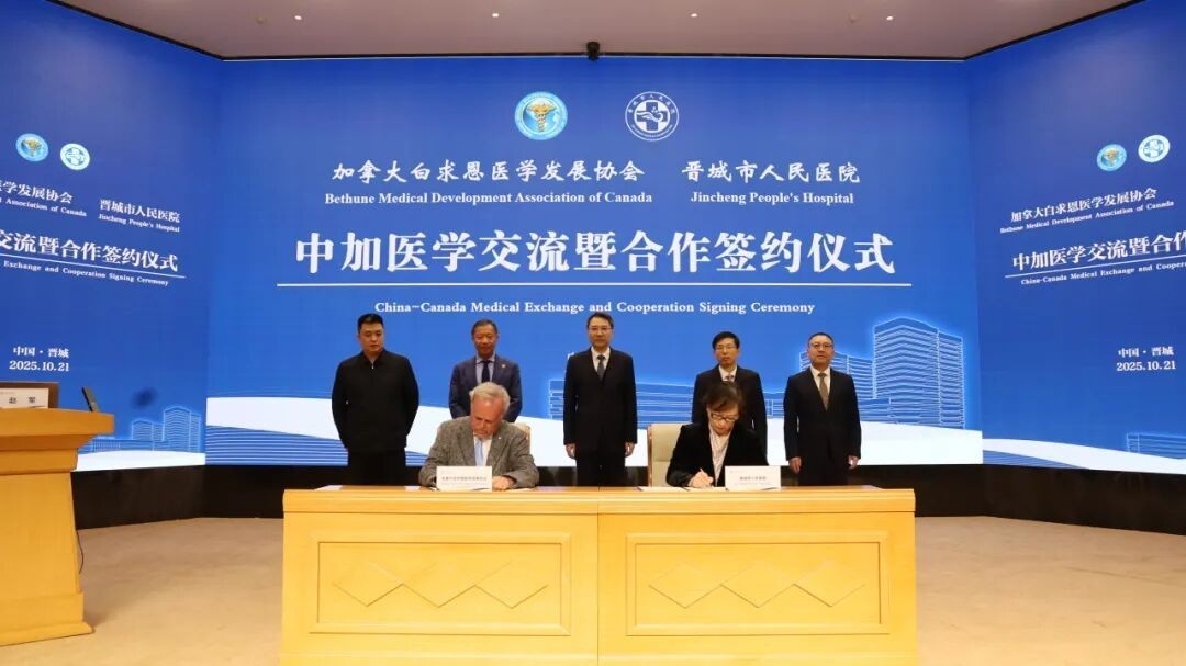 晋城市人民医院与加拿大白求恩医学发展协会共同签署了合作协议,承诺将在医学技术、人才培养、科研创新等领域开展深度合作。