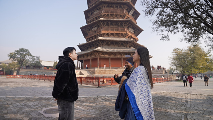 11月5日上午,参加“海外博主看朔州第三季”活动的嘉宾们循着千年文脉,先后探访应县木塔与净土寺,在砖木交织的古建中触摸中华文明的厚重肌理,在禅意氤氲的庭院里感受辽金建筑的独特韵味。