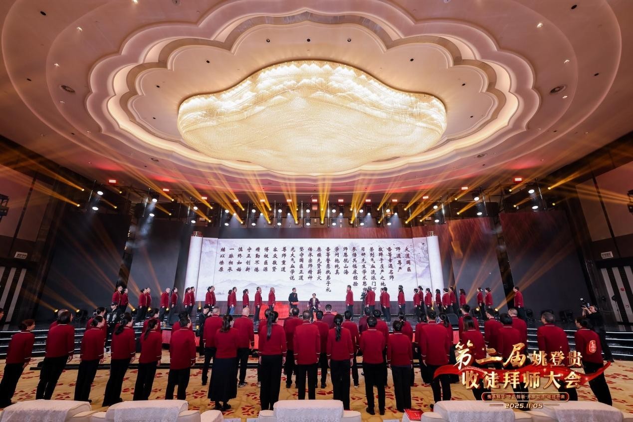 中新网山西新闻11月6日电 杏林深秋添暖意,名师薪火汇京华。2025年11月5日,中医气血派创始人姚登贵先生第二次收徒拜师大会在北京西南华邑酒店隆重举办,大会以“传承精华,守正创新,开宗立派,继往开来”为主题,540余名弟子现场拜师,接续中医气血疗法的传承薪火。