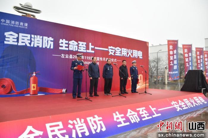 中新网山西新闻11月12日电 近日,左云县2025年“119”消防宣传月启动仪式隆重举行,以“全民消防,生命至上——安全用火用电”为核心主题,拉开了全县消防安全宣传普及的序幕。这场凝聚政企民多方力量的活动,既总结了过往消防工作成效,更以创新举措织密安全防护网,让“预防为主、生命至上”的理念扎根人心。