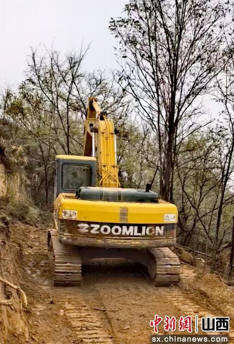 中新网山西新闻11月18日电 “轰隆隆——”11月18日,吕梁方山县大武镇举人头村山梁上的田间地头热闹非凡。挖掘机挥舞着有力的铁臂,有条不紊地平整着路面;工人们脚踩尘土,与机械紧密配合,全身心投入到作业中。