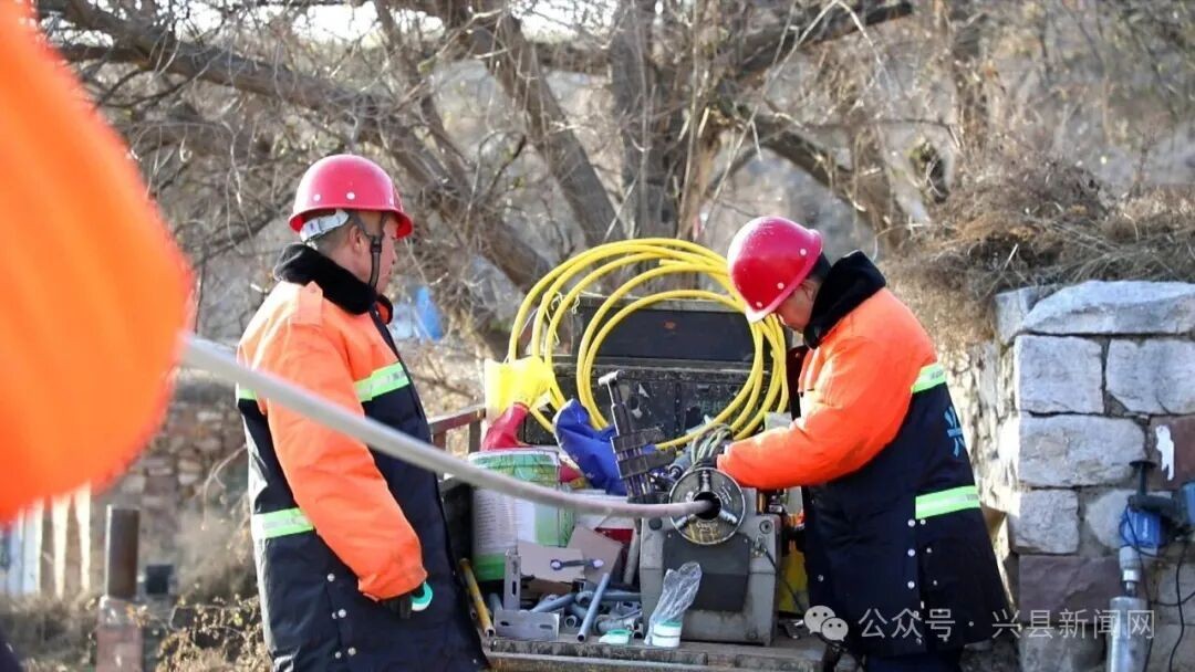 走进二十里铺村南面的山梁上,寒风中,兴县华盛燃气公司的技术人员正忙着对新安装的供暖设备进行最后的安全检测。