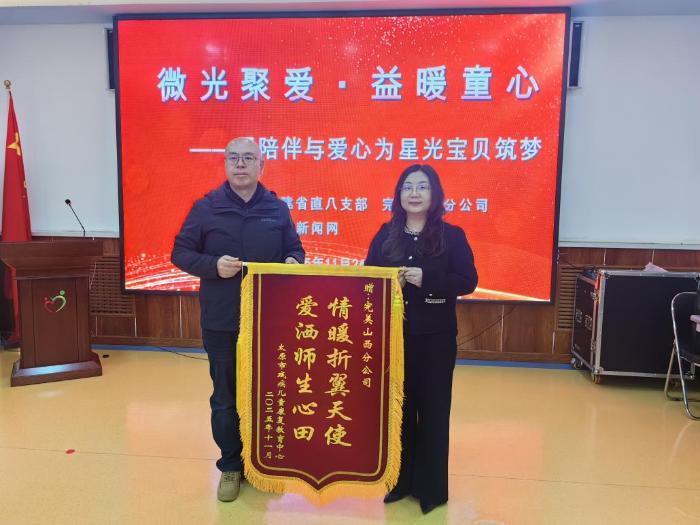 中新网山西新闻11月26日电 11月26日,一场名为“微光聚爱·益暖童心”的冬日慰问活动在山西省太原市残疾儿童康复教育中心温暖举行。活动由完美(中国)有限公司山西分公司(以下简称“完美山西分公司”)、民建山西省直八支部与黄河新闻网联合主办,通过捐赠物资、互动交流等形式,为孩子们送去冬日的温暖与社会的关爱。