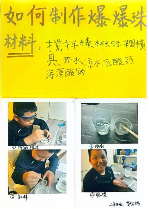 此外,像水的三态变化科学小报、苹果变黑观察记录、爆爆珠制作指南,还有翔实的植物生长日记等作品,无一不是学生们细致观察生活、主动探索的结晶。