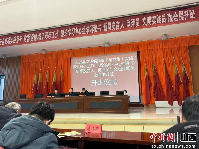 中新网山西新闻12月11日电 近日,山西左云县新时代文明实践大讲堂内书香满溢、思潮涌动,“学思践悟 同向提能”文明实践骨干融合提升班正式开班。这场汇聚意识形态工作、理论学习中心组学习秘书、新闻发言人、网评员与文明实践员的“跨界集训”,打破岗位壁垒、凝聚协同合力,为左云县宣传思想文化工作高质量发展注入强劲动能,也为各地打造复合型宣传骨干队伍提供创新范本。