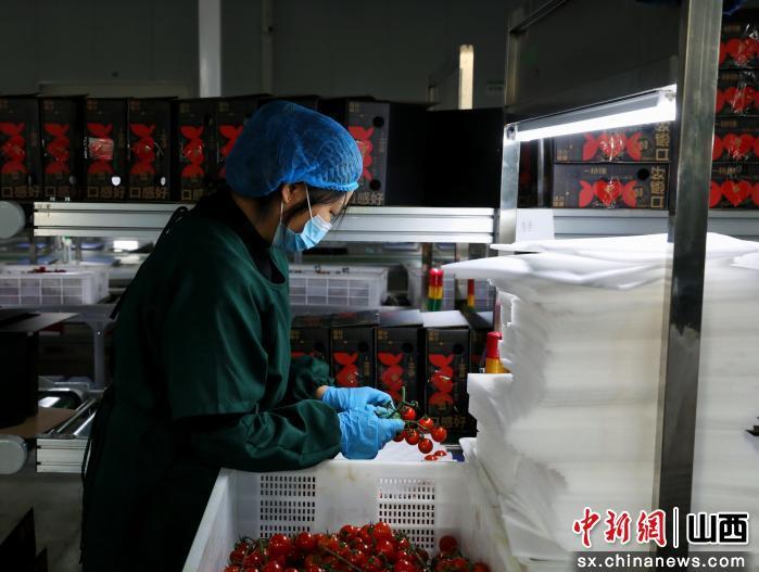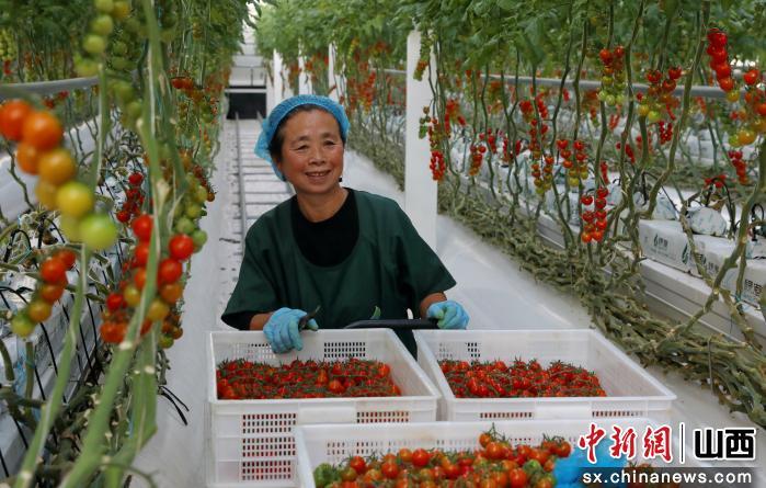 中新网山西新闻12月16日电 深冬时节,座落于山西省大同市云州区的绿隆农业发展有限公司的蕃茄种植大棚内绿意盎然,红、绿、黄三色交相辉映,给单调萧瑟的冬天增添了靓丽色彩。“对我们来说,最大的好处是‘守着家,挣着钱’。”正在给枝条打老叶的工人李淑香欣喜地说,“早上走几分钟就到棚里,家里活儿也不耽误,每月拿着3000块钱的工资,这样的日子再好不过了。”
