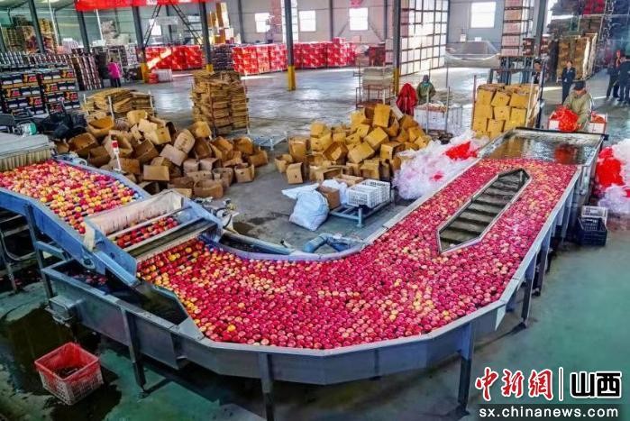 中新网山西新闻12月18日电 山西临猗县耽子镇皓美果蔬有限公司(以下简称“皓美果蔬”)车间内,智能果品分拣线平稳作业,操作工人各司其职,有条不紊进行苹果分选辅助工作。车间外,一辆辆大货车排队装运,产自临猗的苹果即将发往菲律宾。