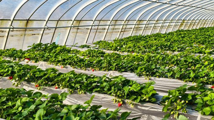 据了解,这里种植的是“红颜”草莓,也称巧克力草莓,含糖量13%至15%,口感八分甜两分酸,且可连续挂果。目前五个大棚共约6.5亩的草莓,自今年9月中旬栽种,采收期可持续至明年6月,预计每棚产量5000—6000斤,年收入可达50万元。