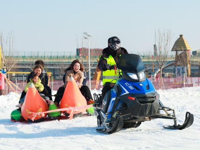 升级后的雪山滑行区设置初级、中级及S型弯道,满足不同游客需求,冰面碰碰车、雪地旋转木马等新项目人气高涨,雪地摩托、雪地坦克等动力项目前也排起体验长队。园区特别打造互动体验区,游客可亲手烤制棉花糖、玉米粒、面包片等雪地美食,新增的温暖帐篷既是休憩补给站,也售卖稻田主题文创产品,让游客把“稻田记忆”带回家。此外,萌雪部落、骑行乐园等儿童专属区域,成为孩子们的玩乐天堂。