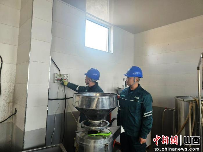 中新网山西新闻2月4日电 2月2日,国家电网山西电力(临汾)太行黎明共产党员服务队和青年突击队队员王小强、冯朝阳,走进山西省临汾市翼城县桥上镇东白驹豆制品加工厂开展“暖冬”用电服务,以专业检查和科普指导保障产业用电安全,为乡村振兴注入电力动能。