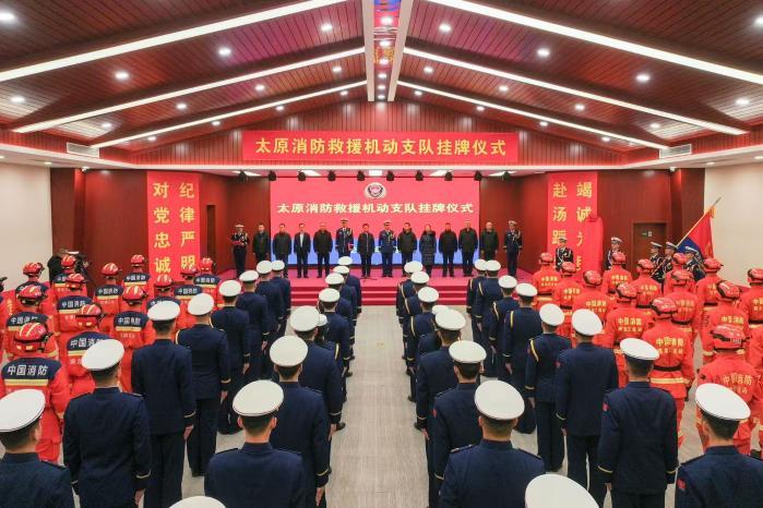 中新网山西新闻2月4日电 2月4日,太原消防救援机动支队隆重举行挂牌仪式,标志着这支肩负着“护佑三晋、守护华北、拱卫京畿”特殊使命的专业队伍,从此将在三晋大地上履行防范化解重大安全风险、应对处置各类灾害事故的职责。