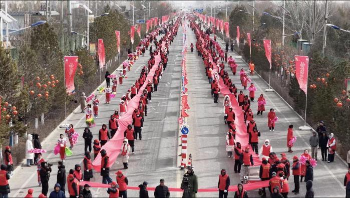 中新网山西新闻2月10日电 (记者 杨杰英)2月10日,农历小年,山西吕梁岚县,一副总长1840.06米、共计1804字的巨幅对联经吉尼斯世界纪录官方认证,正式成为世界“最长的对联”。