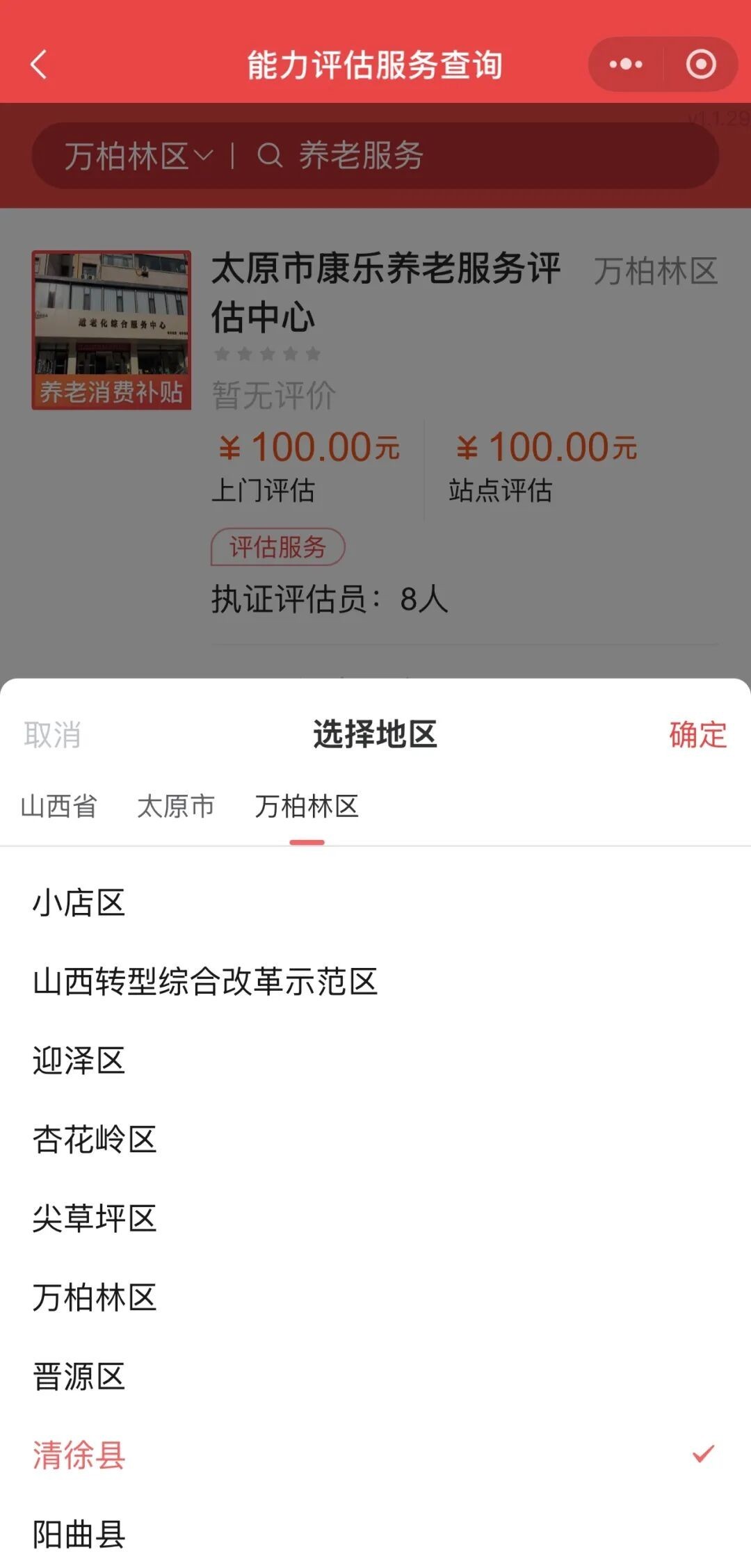 系统会显示您所在区域附近的评估机构列表供您选择,点击相应评估机构的“服务申请”按钮,选择评估方式,预约时间,点击提交。当您被评估为中度以上能力等级后,重复步骤二可领取消费券。