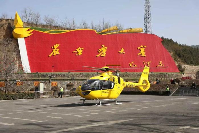 在大寨红旗广场,一架酷炫的直升机静静矗立,成为游客争相打卡的“明星”。游客们有序排队,或在直升机旁合影留念,或走进机舱体验,记录下这一难忘时刻。随后,游客免费参与体验乘坐直升机。随着直升机缓缓升空,大寨的全貌尽收眼底。从虎头山的苍松翠柏,到层层叠叠的梯田,再到整齐划一的大寨新村,昔日“七沟八梁一面坡”的奋斗之地,如今已变成风景秀丽、宜居宜游的美丽乡村。