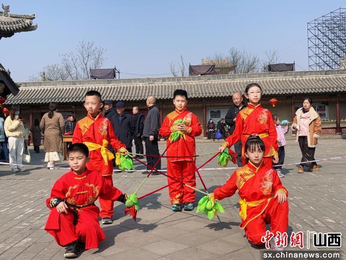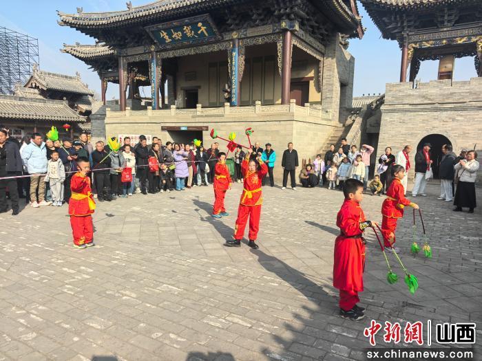 中新网山西新闻2月27日电 近日,太原古县城关帝庙张灯结彩、人气高涨,由太原古县城韩荣华形意拳传习中心、晋源区武术协会联合主办的“全民健身大拜年”活动正式启幕。晋源社区风火流星团队作为特邀表演队伍,以非遗技艺开场献演,为新春群众文化活动增添传统韵味与运动活力。