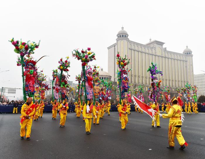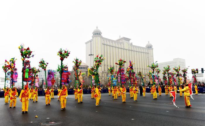 元宵节期间,山西代县举办2026年“紫塞迎春,雁门新韵”文艺表演活动,由代县峨口镇党委、政府组织的国家级非遗代表性项目峨口挠阁亮相现场,60架挠阁、300余人的队伍为当地民众和游客献上了一场具有地方特色的民俗文化盛宴。