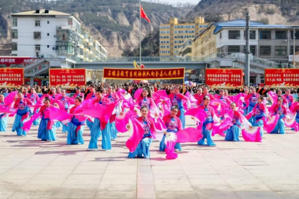 正月十五上午,石楼县秧歌展演活动拉开元宵狂欢大幕。活动现场锣鼓喧天、旌旗飞扬,近百名秧歌队员身着盛装、精神抖擞,彩扇翻飞、舞步灵动,铿锵的鼓点与欢快的旋律交织回荡。原汁原味的石楼非遗秧歌轮番上演,市民驻足围观、掌声不断,浓郁的民俗风情扑面而来,生动展现着石楼深厚的文化底蕴与蓬勃的城市活力。