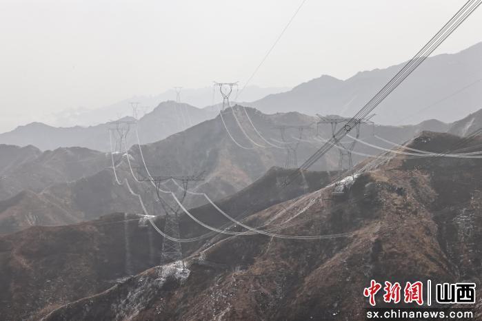 3月5日,山西晋北部分地区突降春雪,国网山西超高压输电公司输电运检五分部运检人员亢志国、万业兴在忻州市繁峙县,对1000千伏岳定一二线进行特殊巡视,保障线路安全稳定。(杜衡)
