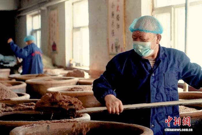 山西大同新荣区的醋坊酿造工人正在生产。何婧 摄来自江西的王贝贝定居大同多年,今年因事未能返乡过年。她专程来到田源酿造门店,挑选多款手工陈醋,准备邮寄给老家的亲人。“山西老陈醋是地道的家乡味,人回不去,就把这口醇香寄回去。”她说。