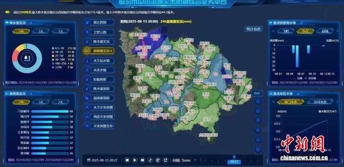 图为临汾市中小流域灾害防御综合业务平台。(资料图) 席云亮 摄近年,临汾逐步完善“天——空——地”一体化监测网络,实现中小流域气象水文信息立体监测、数据实时互通。目前,共布设1部风云气象卫星、10部天气雷达、349套自动气象站,密集分布在山区、河道、地质灾害隐患点等重点区域,平均站网间距优化至6.8公里。
