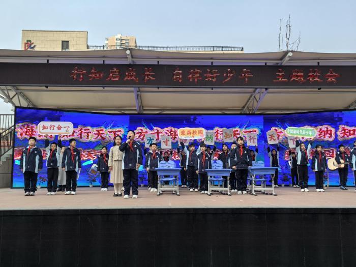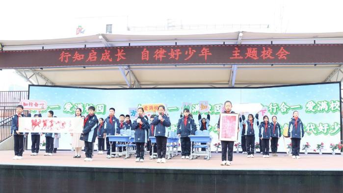 随后,在其中一名同学的带领下,全场齐声高呼:“方寸海纳!知行天下!爱满校园!知行合一,争做新时代好少年!”誓言铮铮,响彻云霄,展现了行知少年传承薪火、立志成才的坚定决心。
