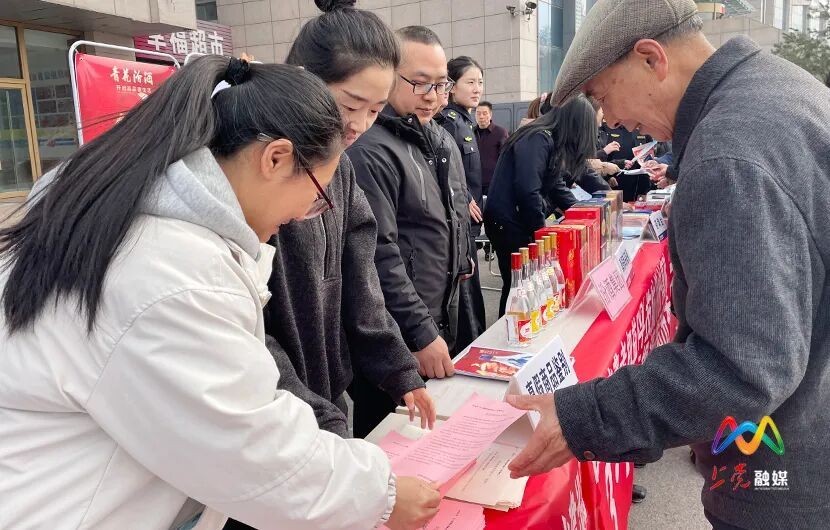 当日9时,幸福广场人头攒动、气氛热烈。各部门通过设立咨询台、摆放宣传展板、发放宣传手册等形式,向过往市民普及《中华人民共和国消费者权益保护法》、食品药品安全、防范电信诈骗等相关知识。在真假商品对比展示区,工作人员以白酒等商品为例,细致讲解包装外观、防伪标识等辨别要点,手把手教市民掌握识假辨假实用技巧。