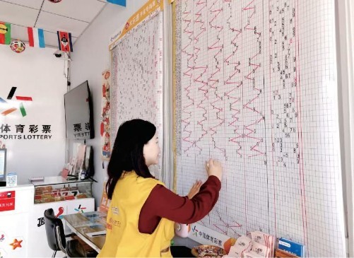 店长杨琳书写中奖号码走势图手写走势图只是杨琳经营小店众多“小心思”之一。几年前,她和许多刚毕业的大学生一样,面临着就业压力。2023年10月,看到山西体彩开展面向大学生、研究生群体的就业帮扶网点征召信息后,选择加入体彩行业发光发热。