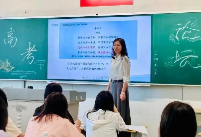 讲授《赤壁赋》时,她带领学生模拟夜游赤壁的场景,共赏清风明月;解读《祝福》时,她引导学生透过祥林嫂的悲剧,叩问时代与人性。语文,从来不是刻板的知识点堆砌,而是人心与文字的温柔相遇,是古今文脉的深情摆渡。