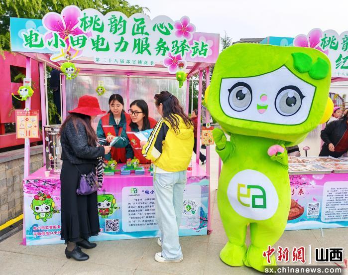 在活动现场,国网运城供电公司还设立了“桃韵匠心电小田电力服务驿站”,党员服务队队员们身着红马甲,一边为商户和游客讲解扫码用电设备的操作方法,一边宣传安全用电、节约用电知识,推广“网上国网”App,提供用电咨询、故障报修等一站式服务。可爱的“电小田”IP人偶穿梭在花海与市集之间,向游客发放安全用电宣传册,成为桃花节上一道亮眼的风景线。“从设备安装到现场服务,供电公司全程跟进,有问题随叫随到,让我们经营起来特别安心。”一位农特产品展销商说道。
