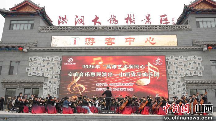 中新网山西新闻4月8日电 (刘小红)4月8日上午,2026年洪洞大槐树寻根问祖旅游季系列活动之“交响乐展演”正式拉开帷幕,在洪洞大槐树景区根祖文化广场掀起一场音乐与景区、游客、市民群众共奏的交响,为游客市民及回乡寻根的移民后裔带来震撼心灵的视听盛宴。