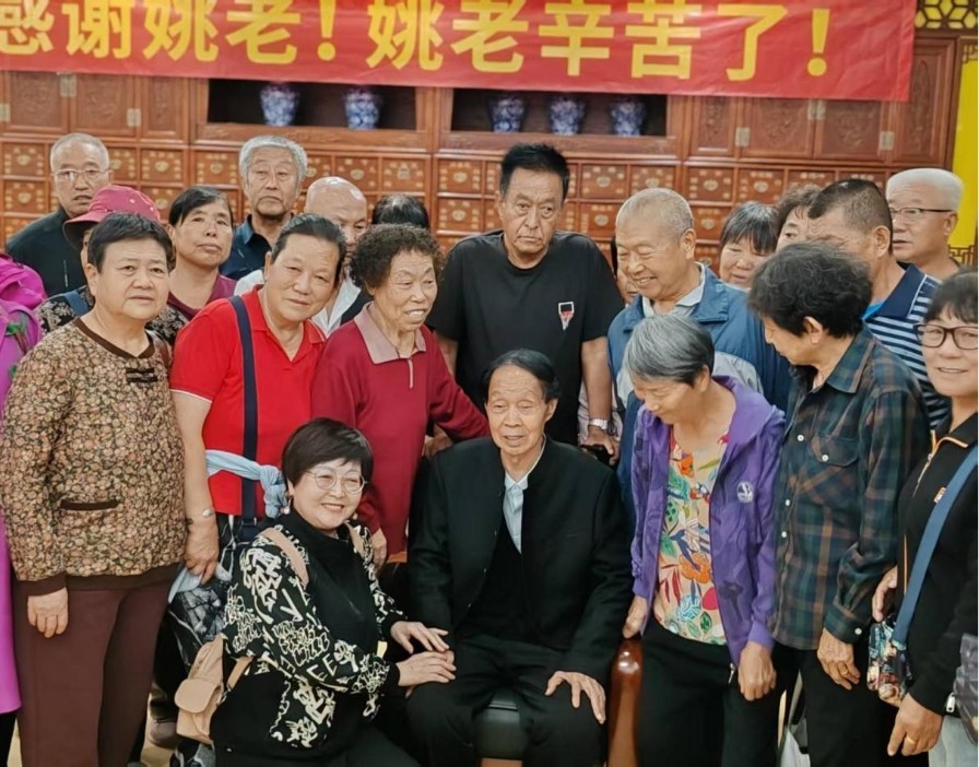 (气血派创始人姚登贵首次收徒拜师大会上,全体弟子与姚老合影)师门盛况:“八字辈、四科制”,传承体系初具规模