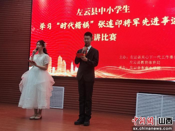 中新网山西新闻12月25日电 近日,山西左云县中小学生学习“时代楷模”张连印将军先进事迹演讲比赛在东南小学成功举办。来自全县各中小学的优秀选手同台竞技,以真挚的情感和生动的语言,深情讲述张连印将军退休后扎根荒山、无私奉献、植树造林的感人故事。小学生话语纯真而坚定,初中生思考深入而激昂,声声诉说间,将军的初心与坚守化为润泽心灵的磅礴力量。比赛不仅展现了左云青少年昂扬向上的精神风貌,更是一次深刻的思想淬炼与精神洗礼,现场掌声不断,氛围热烈感人。