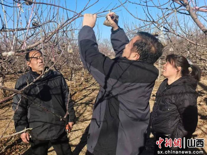 中新网山西新闻1月4日电 寒冬腊月,山西省运城市闻喜县阳隅镇瓮村的果园内暖意融融、一派繁忙。为切实提升果农的果树修剪技术,村里邀请果树种植专家深入田间地头,开展现场指导教学,把实用的种植技术送到果农心坎上。