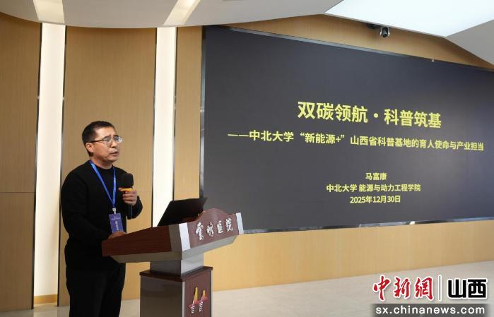 中新网山西新闻1月5日电 (杨杰英 李梦冉)“中北大学‘新能源+’科普基地立足‘双碳’需求,依托军工底蕴与学科优势,构建‘科普筑基、育人赋能、产业联动’格局。”近日,中北大学“新能源+”科普基地负责人马富康在山西科普工作交流会上,以《“双碳”领航科普筑基:中北大学“新能源+”科普基地的育人使命与产业担当》为题,介绍了高校在服务国家‘双碳’目标中的新作为。