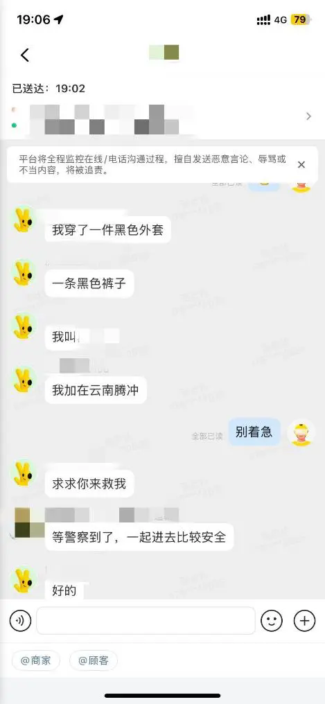 “求求你救救我!我走不了了!”12月6日傍晚6点左右,美团骑手小章(化名)在送餐途中,突然收到用户通过平台发来的求助私信。对方称,自己在某商场五楼电影院门口被人非法控制,无法脱身。