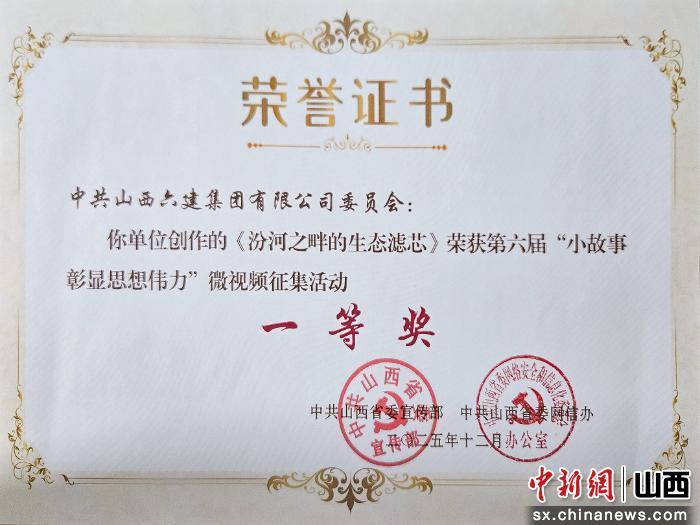 中新网山西新闻1月15日电 近日,第六届山西省“小故事彰显思想伟力”微视频征集活动评选结果揭晓,山西六建集团申报作品《汾河之畔的生态滤芯》获大赛一等奖,这是集团连续三年参赛以来荣获的最高荣誉。
