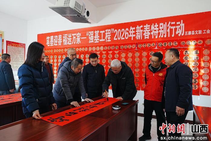 中新网山西新闻1月17日电 新春将至,年味渐浓。1月15日,由山西省五寨县文联联合县总工会、团县委举办的“笔墨迎春福送万家”送春联活动走进李家坪乡李家坪、张家坪村,以笔墨为媒传递新春祝福,用文化服务筑牢基层精神根基,让“强基工程”的温暖触角延伸至乡村一线。