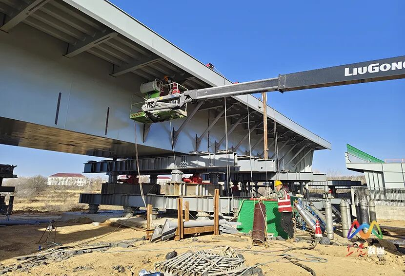 “这是工程核心控制性桥梁,全桥共五跨,其中第四跨上跨G55二广高速,采用82米钢箱梁顶推施工工艺。”项目副经理秦晓飞向记者介绍,目前团队正全力推进钢箱梁右幅拼装,元旦前已顺利完成左幅顶推施工,为后续工序衔接筑牢了坚实基础。