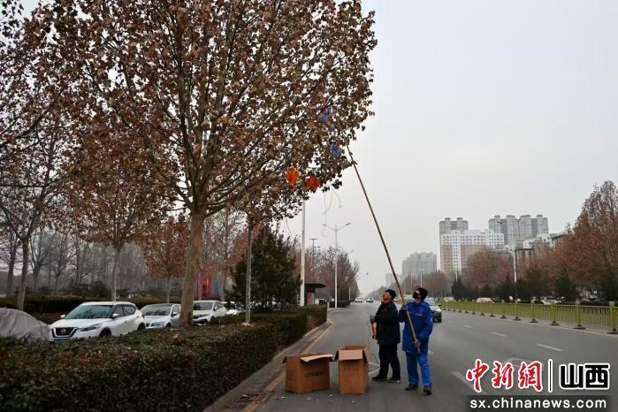 中新网山西新闻1月23日电 随着2026马年春节临近,山西祁县城区主干道已披上“节日盛装”。连日来,工作人员正紧锣密鼓地在东风路、新建路、昌源路等重点路段悬挂彩灯,一串串造型别致的灯饰将街巷点缀得暖意融融,浓厚的年味儿在光影中愈发醇厚。