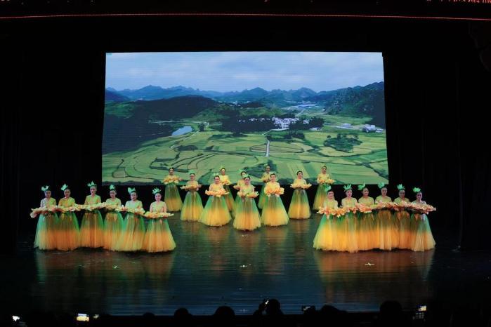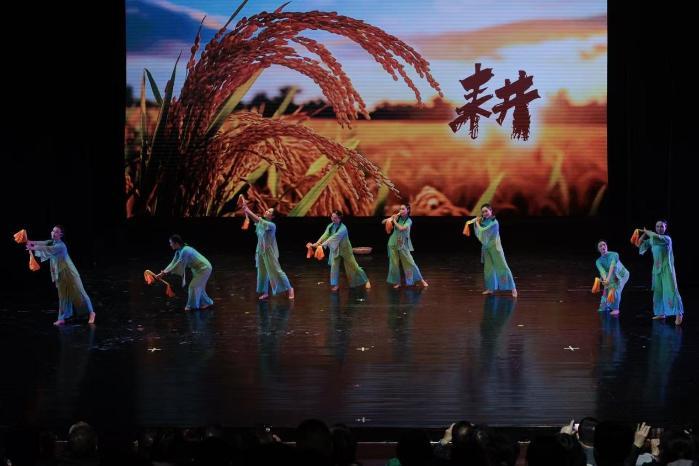 舞蹈《耕》聚焦田间地头的劳动场景,荣获第十一届华北五省优秀作品称号,传递出质朴而热烈的生命力量。男声独唱《那是个谁》以地道乡韵表达黄土高原的深情,引发观众强烈共鸣。演出在全体演员共同表演的《花开中国》中达到高潮,姹紫嫣红舞出万里山河的锦绣气象,也为整场演出画上圆满句号。