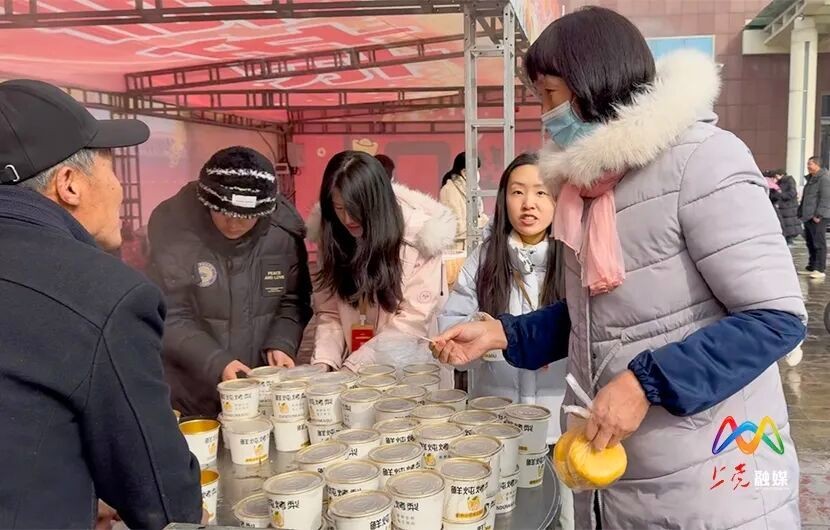 在上党区月华街太行特优农产品展销馆内,“粥香暖人心,好物贺新春”的氛围格外浓厚。免费福利领取处前,工作人员正忙着为大家盛粥,软糯香甜的粥品驱散了冬日的寒气;一旁的花馍领取区,造型精巧的手工花馍引人注目,深受市民喜爱。同时,免费春联领取区依然人气十足,一副副墨香馥郁的春联,承载着对新年的美好祝愿,被市民们欣然挑选、带回家中。