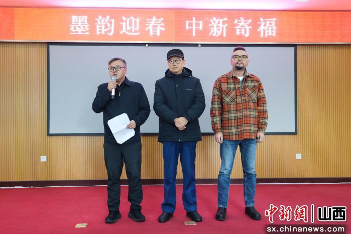 活动伊始,中国新闻社山西分社社长高小奇致辞。他表示,春联作为春节文化的重要载体,是描绘时代画卷,抒发美好期盼的优秀传统文化的瑰宝。“书法家以笔为媒,以墨传情,正是要共同感悟这份流淌在笔墨间的文化自信,共同传扬这份植根于民族血脉的精神追求。希望这样富有中国风和烟火气的活动,为山西分社增添浓浓的年味和文化的馨香,更搭建起专业艺术家与大众传播的桥梁,连接我们共同的文化记忆和对美好生活的憧憬。”