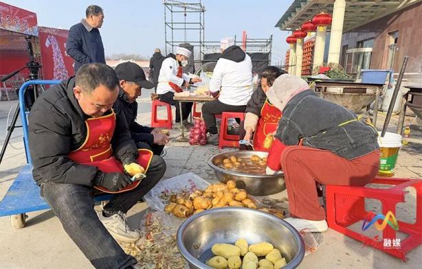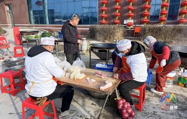 当日清晨八点,后厨师傅们便已忙碌起来,支铁锅、生灶火、备食材,每一个环节都有条不紊,阵阵鲜香早早萦绕在展销馆周边。闻讯而来的村民们早早赶到现场等候。活动现场,灶火正旺、蒸汽升腾,上党烩菜、本土蒸馍、暖心蛋花汤等极具地方特色的美食轮番出锅,香气扑鼻。工作人员穿梭其间,为大家送上热饭热菜,大家围坐在一起,共享美味、闲话家常,欢声笑语不断,处处洋溢着温馨祥和的烟火气息。