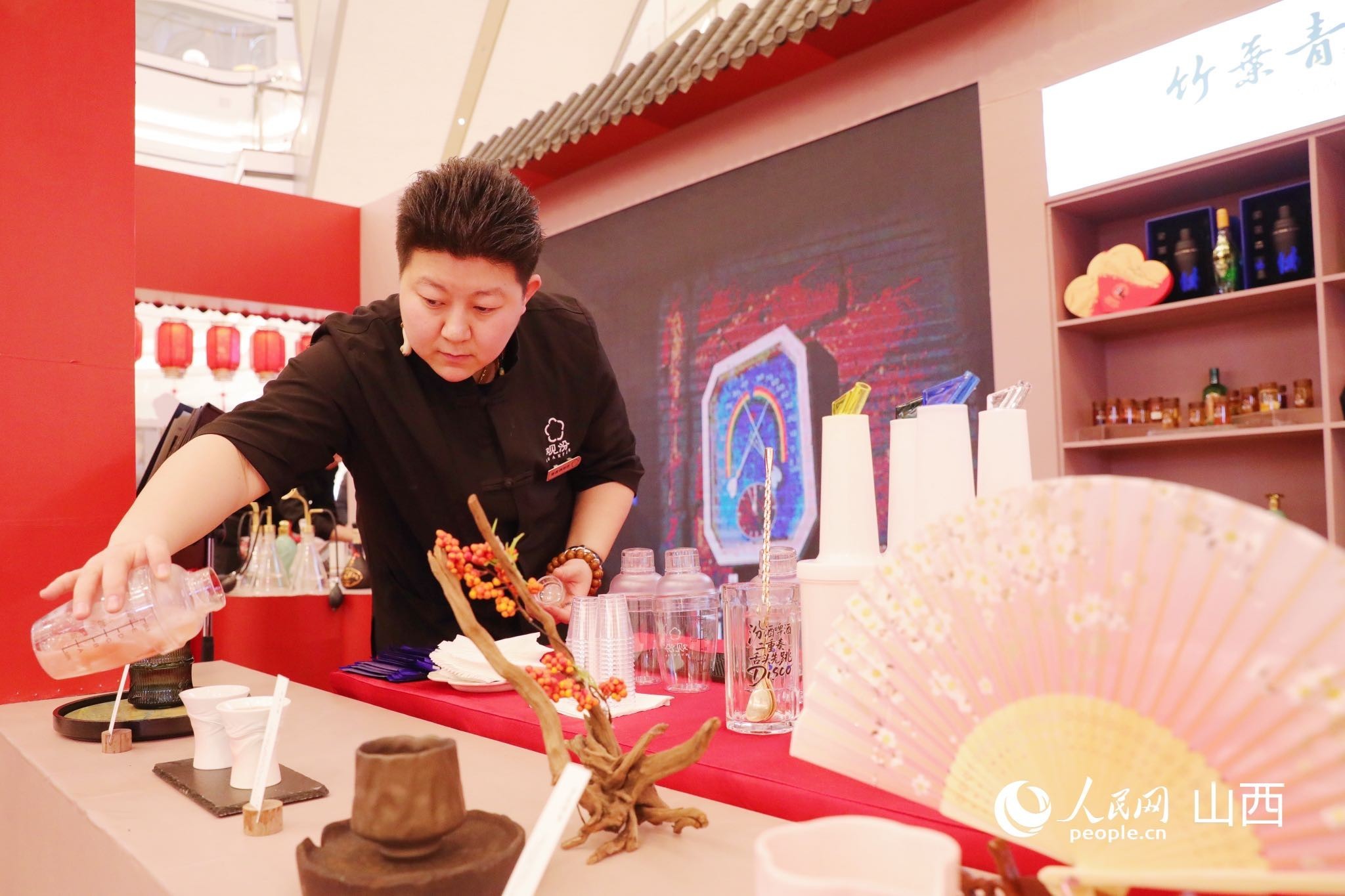 现场调制玫瑰汾酒。人民网记者 王帆摄