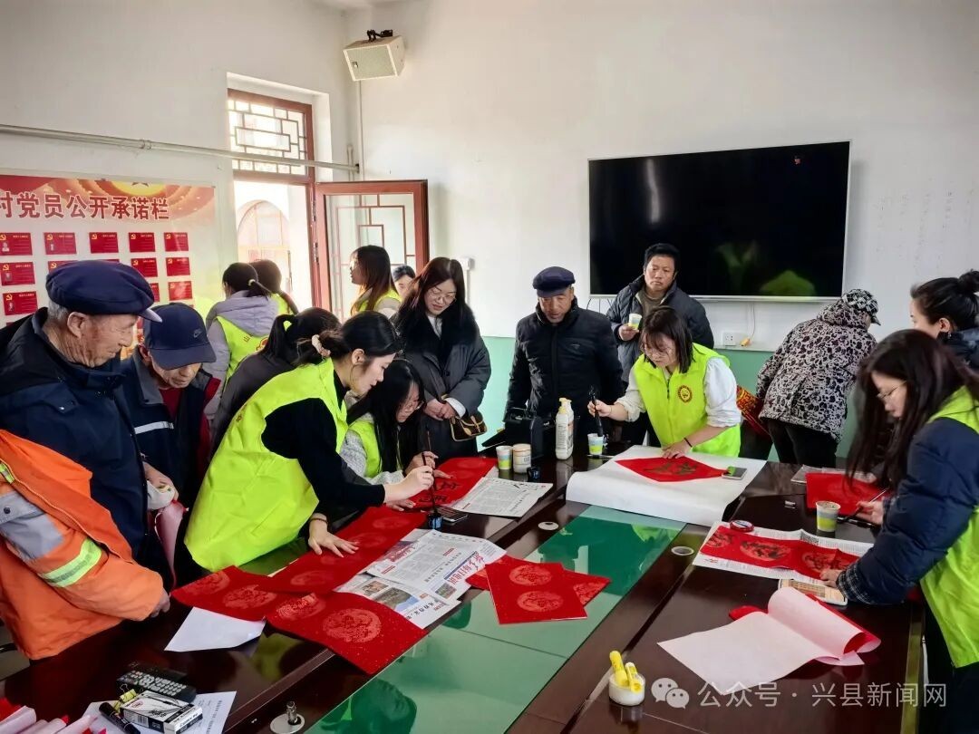 活动现场暖意融融,志愿者们分工协作、热情服务,用实际行动传递爱心。在春联书写区,书法爱好者们铺纸研墨、挥毫泼墨,笔走龙蛇间,“龙腾盛世千家喜,春满神州万户欢”“福旺财旺运气旺,家兴人兴事业兴”等一幅幅寓意吉祥的春联、一个个饱满遒劲的“福”字新鲜出炉。群众围聚桌前,认真挑选心仪的春联,墨香与欢声笑语交织在一起,浓浓的年味扑面而来。