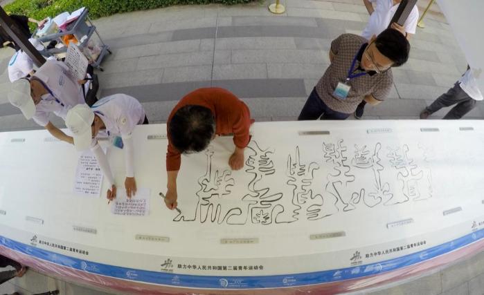 2022年12月,他在黄河壶口瀑布畔,以15289幅已获版权的组合字作品成功挑战第二项吉尼斯世界纪录。现场创作的“吉县苹果撩人香”组合字,成为艺术赋能地方文旅的生动案例。此外,他将《道德经》全文5162字巧妙重构为1085个组合字的系列创作,全部完成了版权登记。