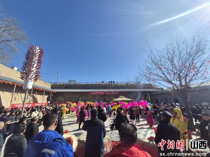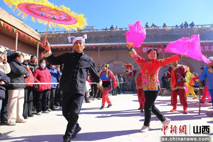 中新网山西新闻2月9日电 锣鼓铿锵有力,唢呐雄浑苍劲,伞头秧歌扭起来,陕北民歌唱起来……2月7日,陕西省宜川县壶口镇岭玉村,“首届陕北传统过大年”活动在七零后土窑洞大院火热开场,奏响了新春的序曲。