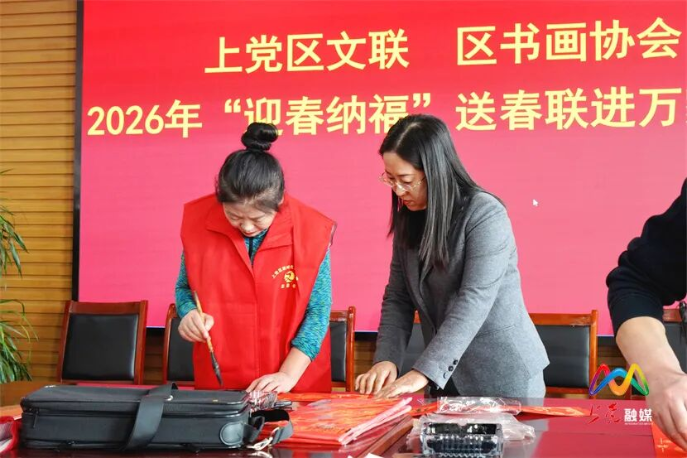 上党区文联主席刘亮说:“岁序更替,万象更新。在2026年新春来临之际,上党区文联携手书画协会深入企业、社区、乡镇、机关,积极开展‘迎春纳福’送春联进万家活动。书法蕴含年味,春联饱含深情。本次活动弘扬传承了中华优秀传统文化,营造了祥和浓厚的节日氛围,把党和政府的关怀和温暖送到群众身边,为奋进‘四宜’上党贡献文化力量。”(完)