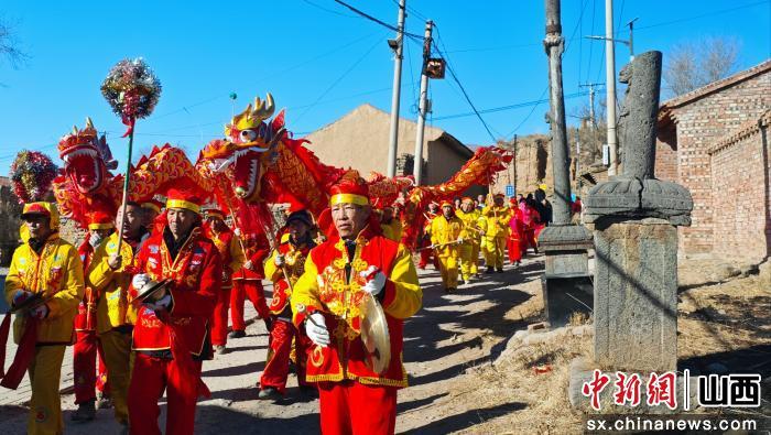中新网山西新闻2月20日电 锣鼓喧天,劲舞欢歌,处处洋溢着迎新春的喜庆气息。2月18日,大年初二,沉睡的山西大同新荣区助马堡村便被欢腾的年味唤醒,上演着一场穿越百年的新春盛景。