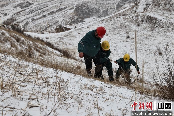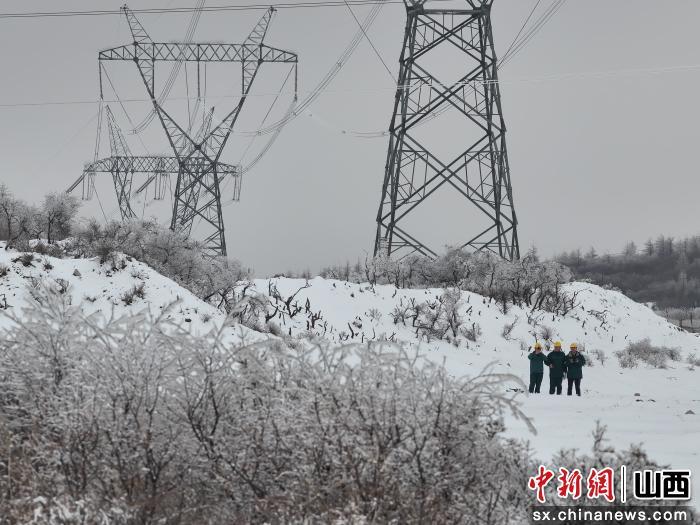 中新网山西新闻3月16日电 隆冬未尽,春寒料峭。3月14日,山西忻州代县、宁武县交界的盘道梁地区突降暴雪,气温骤降至零下6℃,山顶积雪最厚处达15厘米,500千伏苗忻一二线可能有覆冰风险。国网山西超高压输电公司输电运检五分部的10名队员闻令而动,党员王东升、梁栋、王霄飞带头冲锋在前,向着风雪中的高山杆塔进发,一场与冰雪的较量就此展开。